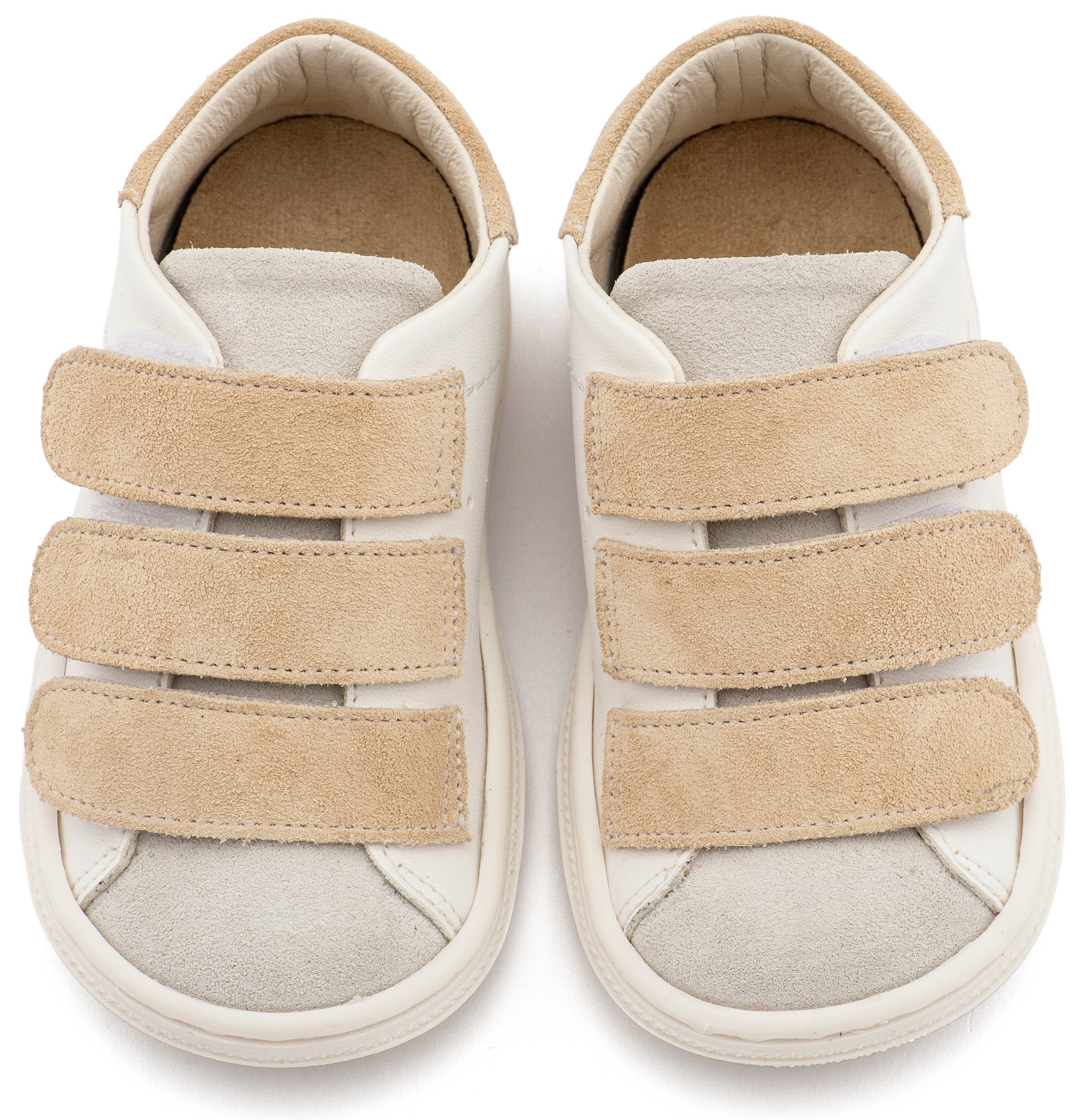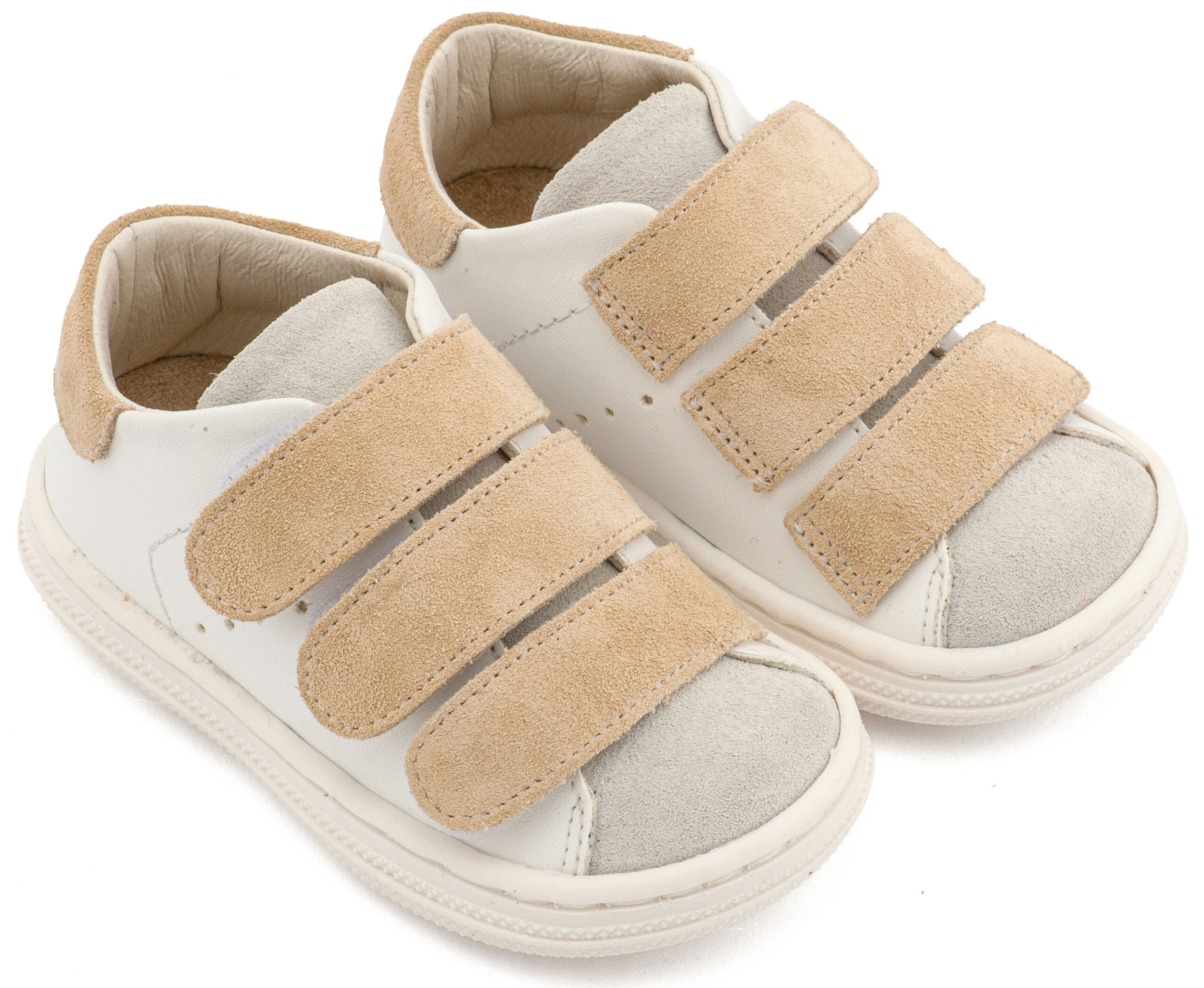 Δερμάτινο Σνίκερ με Τριπλή Μπαρέτα Χρατς σε Λευκό Μπεζ Χρώμα