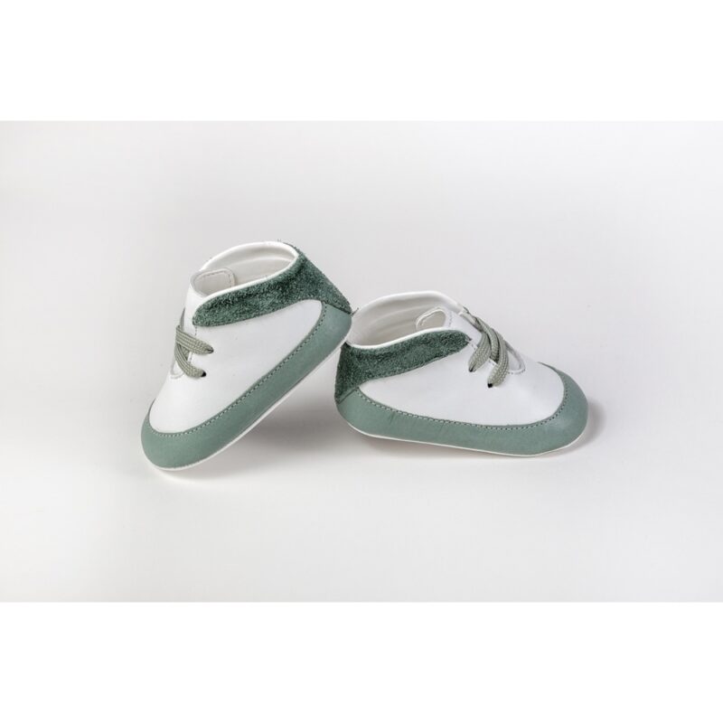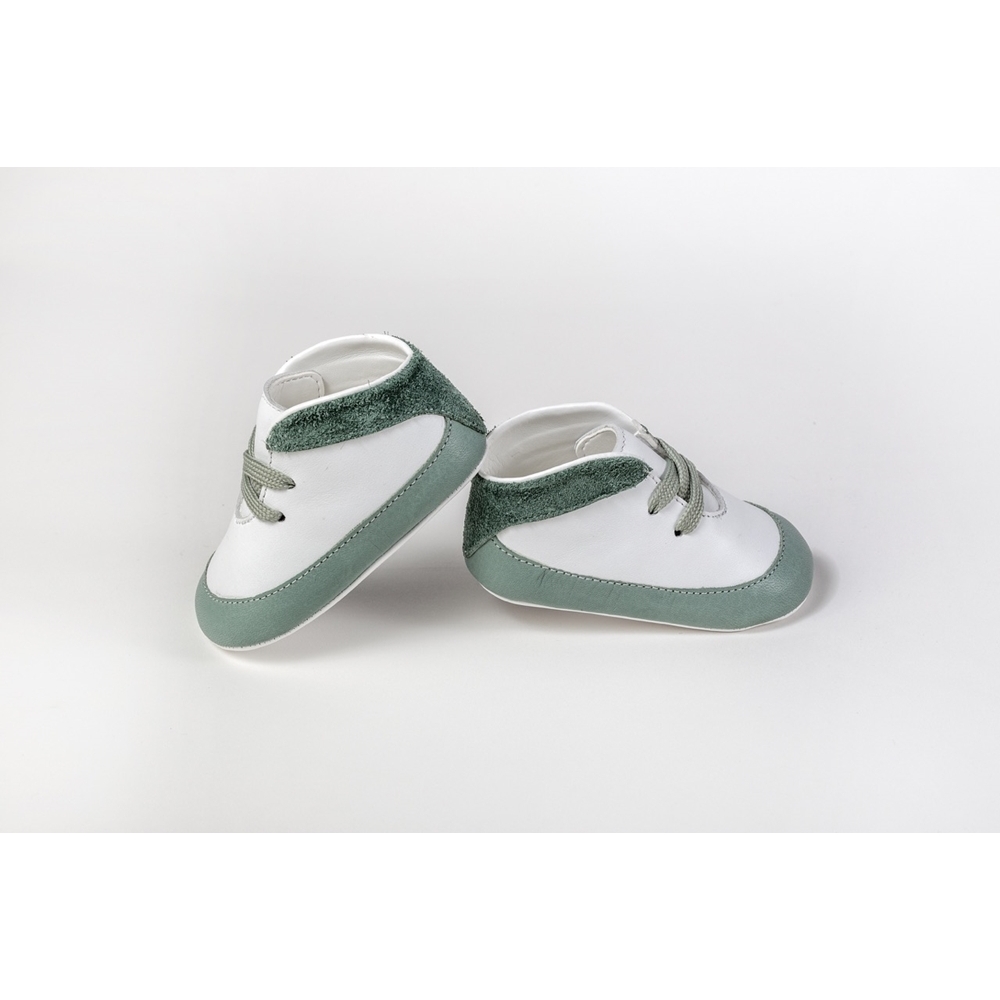 Παπουτσάκι αγκαλιάς χαμηλό δετό από λευκό και μέντα δέρμα και καστόρ.