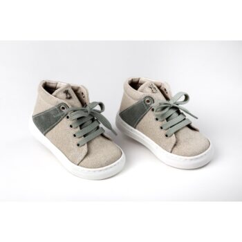 Μποτάκι περπατήματος δετό από μπεζ ύφασμα και λεπτομέρεια από μέντα καστόρ.