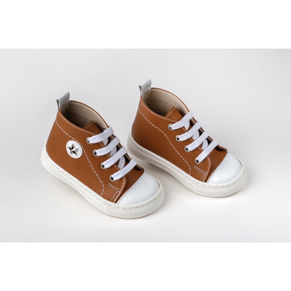 Μποτάκι περπατήματος δετό από λευκό και ταμπά δέρμα.