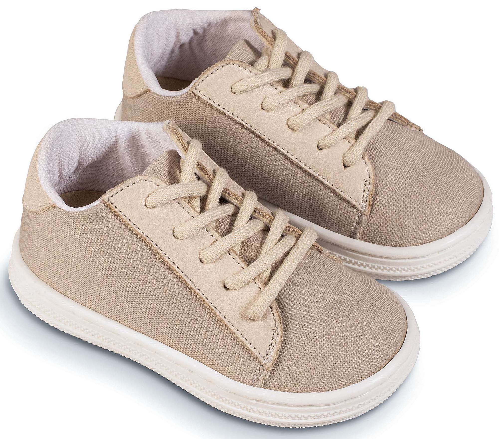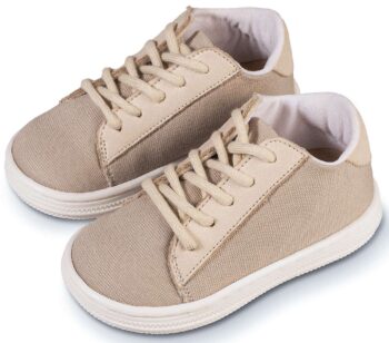 Υφασμάτινο Δετό Σνικερ απο Ύφασμα και Δέρμα σε Μπεζ Χρώμα
