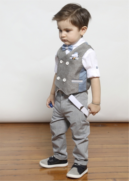 Βαπτιστικό κοστουμάκι για αγόρι Σέπια-Καρό Α4423ΣΚ, Mi Chiamo