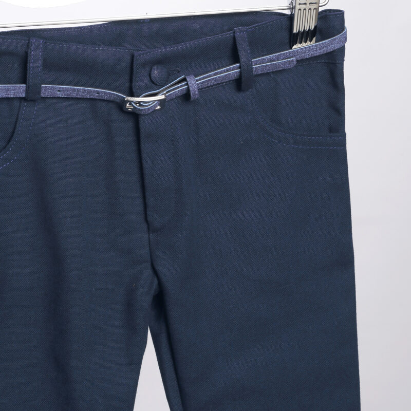 Παντελόνι καμπαρντίνα σε μπλε χρώμα. Εσωτερικά υπάρχει λάστιχο με κουμπότρυπα για τη ρύθμιση της μέσης. Διατίθεται επίσης σε άσπρο, μπεζ, βεραμάν, γκρι και ραφ χρώμα. Συνοδεύεται από σταθερή ζώνη.