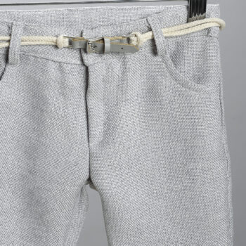 Βερμούδα καμβάς σε γκρι χρώμα. Εσωτερικά υπάρχει λάστιχο με κουμπότρυπα για τη ρύθμιση της μέσης. Διατίθεται επίσης σε μπεζ, σιέλ και ραφ χρώμα. Συνοδεύεται από σταθερή ζώνη κορδόνι.