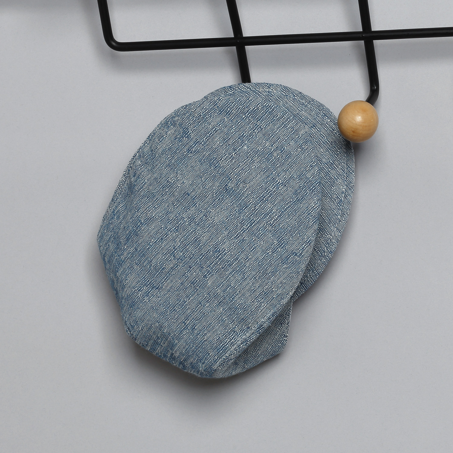 Μπλε λινό ψάθα παντελόνι, άσπρο βαμβακερό πουκάμισο και μπλε λινό ψάθα γιλέκο.