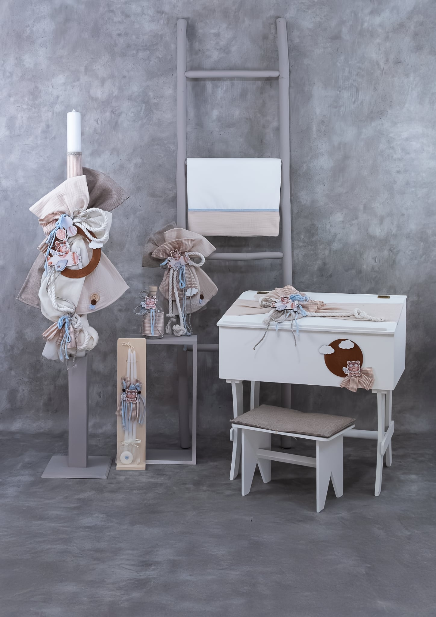 Ένα σετ που συνδυάζει ρομαντισμό, κομψότητα και φροντίδα στη λεπτομέρεια, για να κάνει τη βάπτιση του παιδιού σας πραγματικά ξεχωριστή!