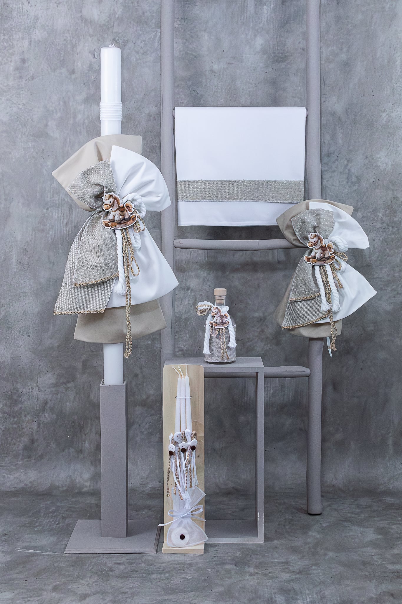 Χειροποίητο Σετ βάπτισης για Αγόρι Αλογάκι μπεζ