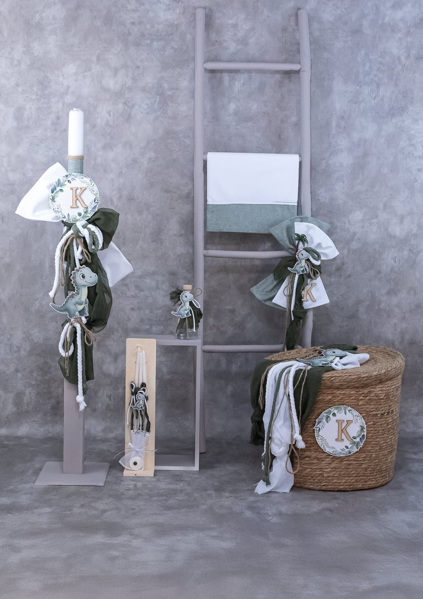 Χειροποίητο Σετ βάπτισης για Αγόρι Δεινοσαυράκι με μονόγραμμα