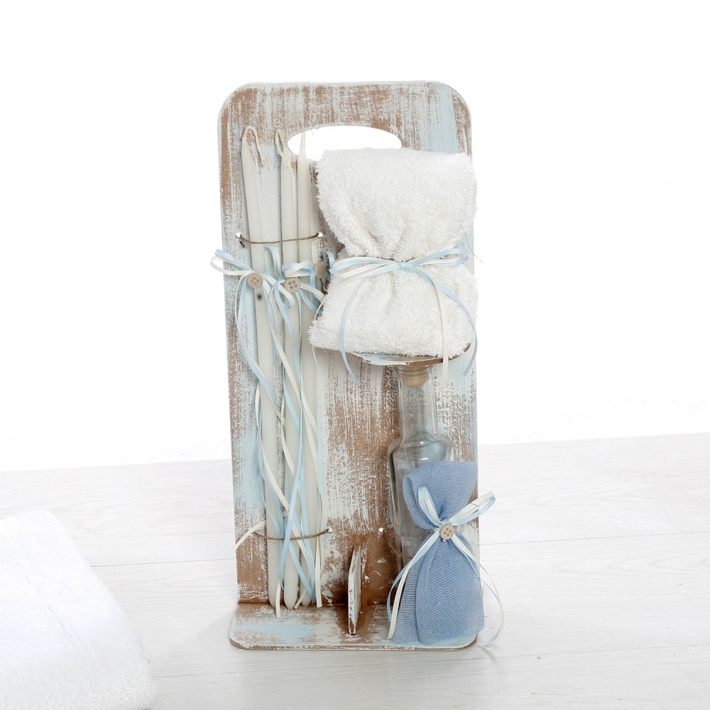 ✔ Σετ λαδιού με μπουκαλάκι, σαπούνι και κεράκια, διακοσμημένα σε απαλά γήινα χρώματα με κορδέλες και φιόγκους.