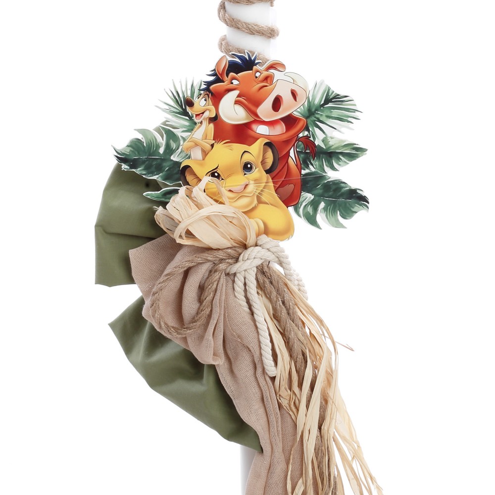 ✔ Λαμπάδα βάπτισης, στολισμένη με διακοσμητικό UV εκτύπωσης των χαρακτήρων Lion King, φυσικά υλικά.