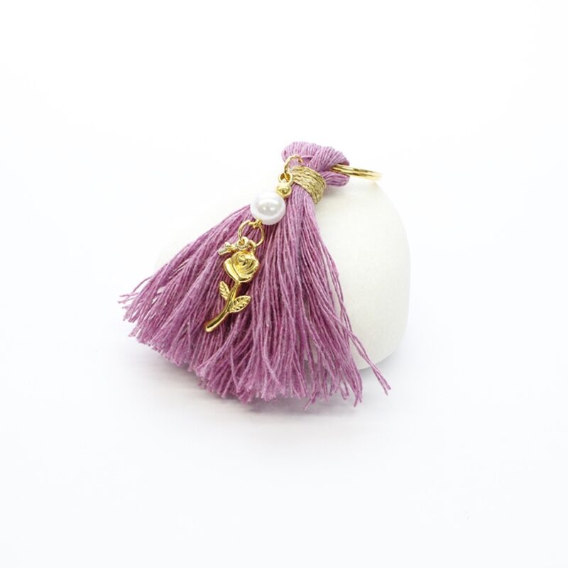 Μαρτυρικά Μπρελόκ με κεραμεική χάντρα λουλούδι, ακρυλικό σταυρό και φουντάκι 23110