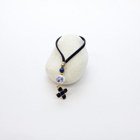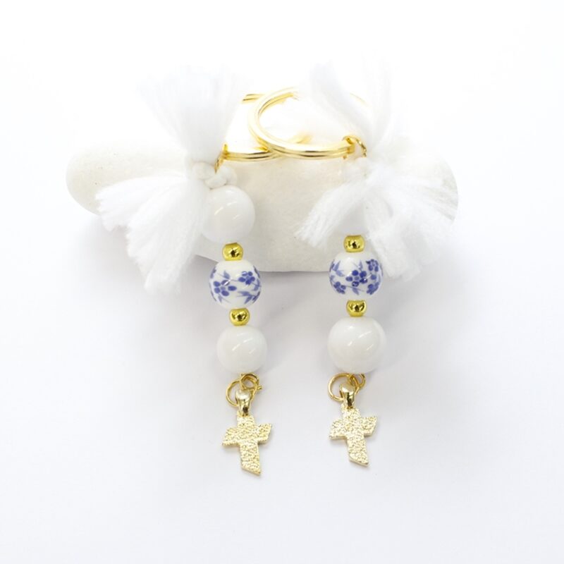 Μπρελόκ με κεραμική χάντρα λουλούδι και επίχρυσο σταυρό