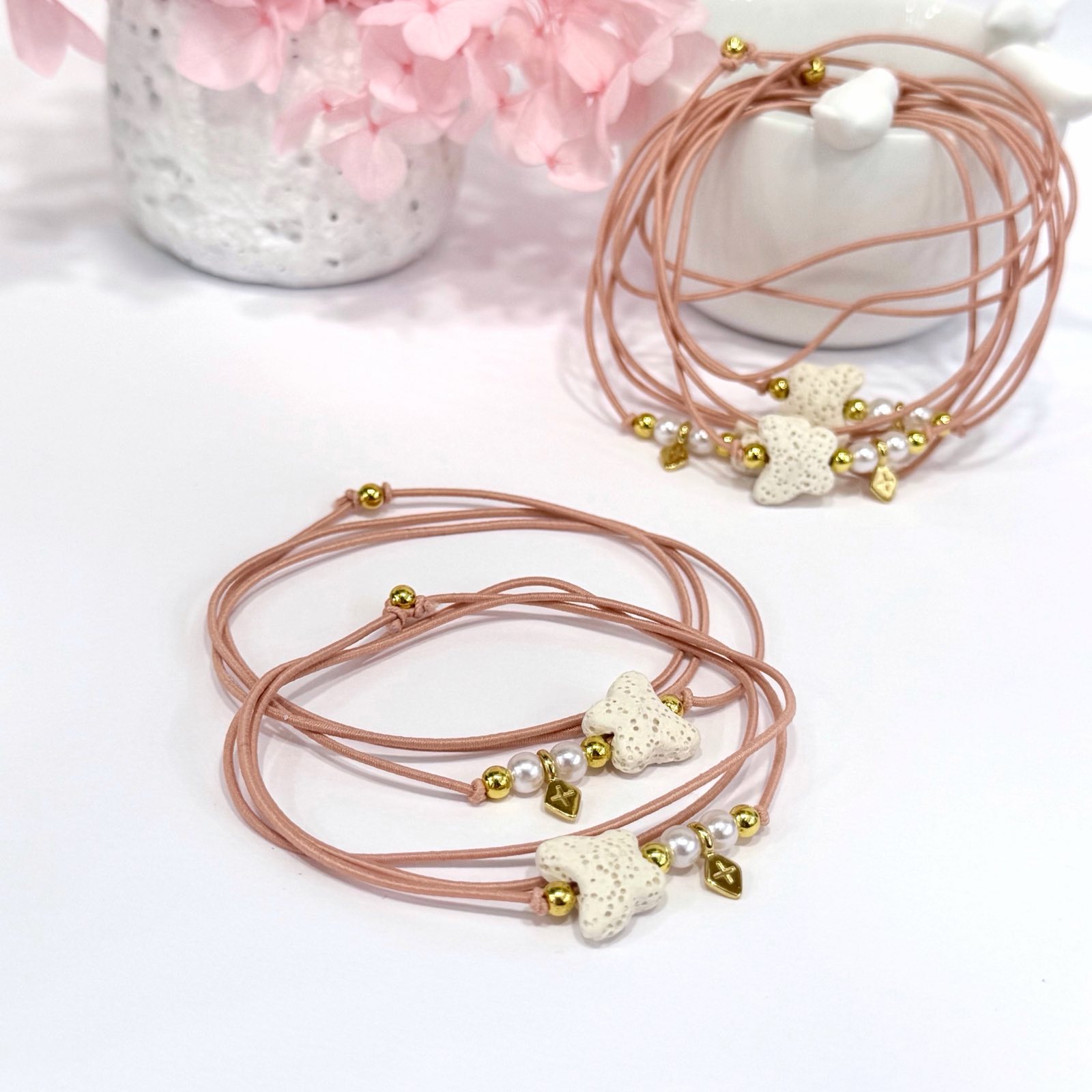 Βραχιόλι με ελαστικό κορδόνι ,λάβα πεταλούδα και σταυρό 24Κ
