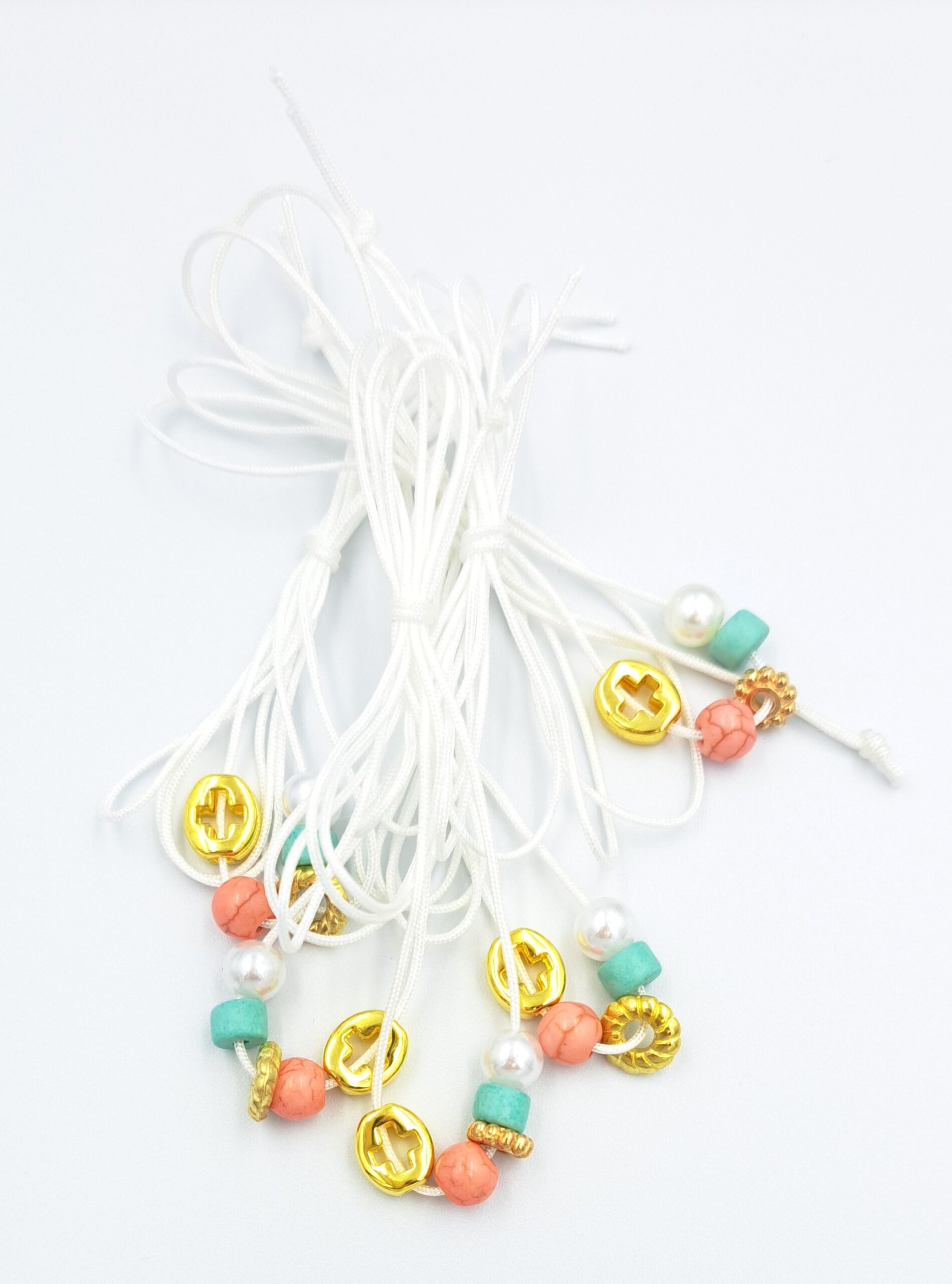 Μαρτυρικά κολιέ για τους καλεσμένους σας. Χειροποίητο μαρτυρικό κολιέ με λευκό σχοινάκι, σε αποχρώσεις ροζ και βεραμάν!