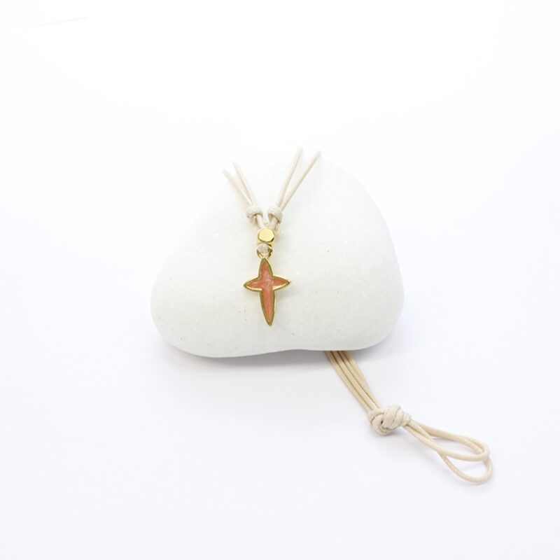 Λαιμού με μεταξωτό κορδόνι και επίχρυσο σμάλτο σταυρό 24κ