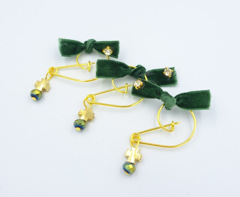Μαρτυρικά πέτου για τους καλεσμένους σας με χρυσή παραμάνα, πράσινη βελούδινη κορδέλα και χρυσά στοιχεία!