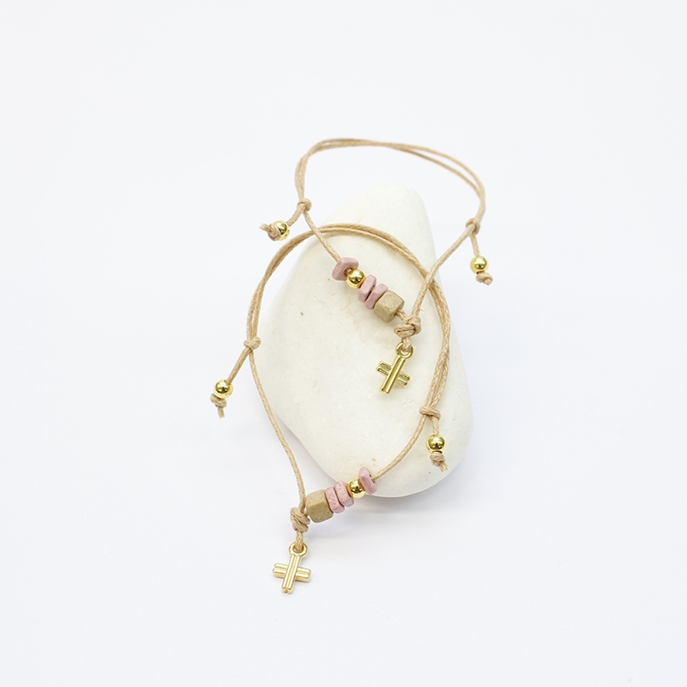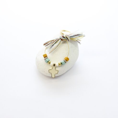Βραχιόλι με κεραμεικές χάντρες και επίχρυσο σταυρό 24κ