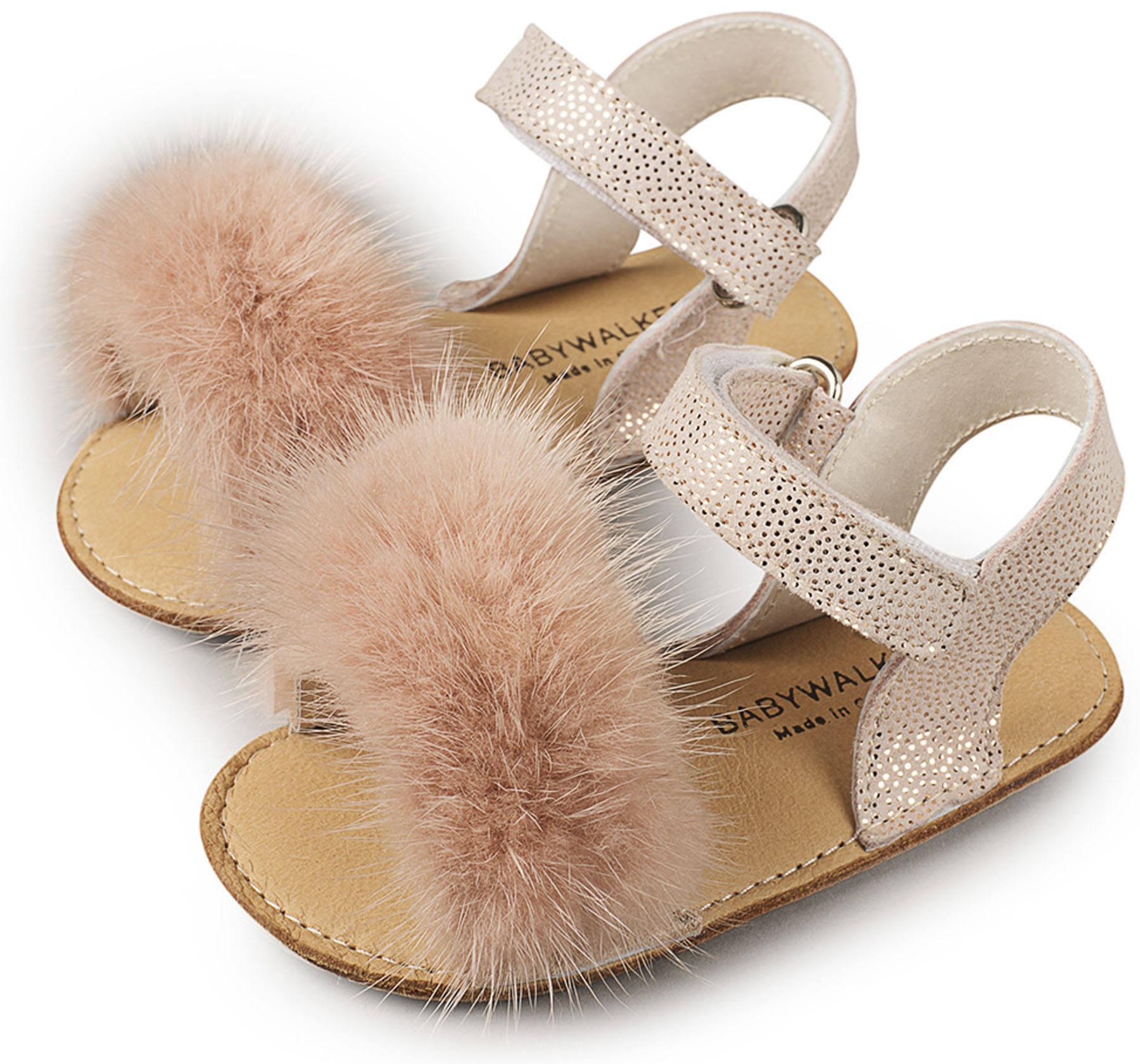 Δερμάτινο Πέδιλο με Γούνα από Δέρμα Πέρλα σε Εκρού χρώμα