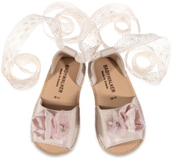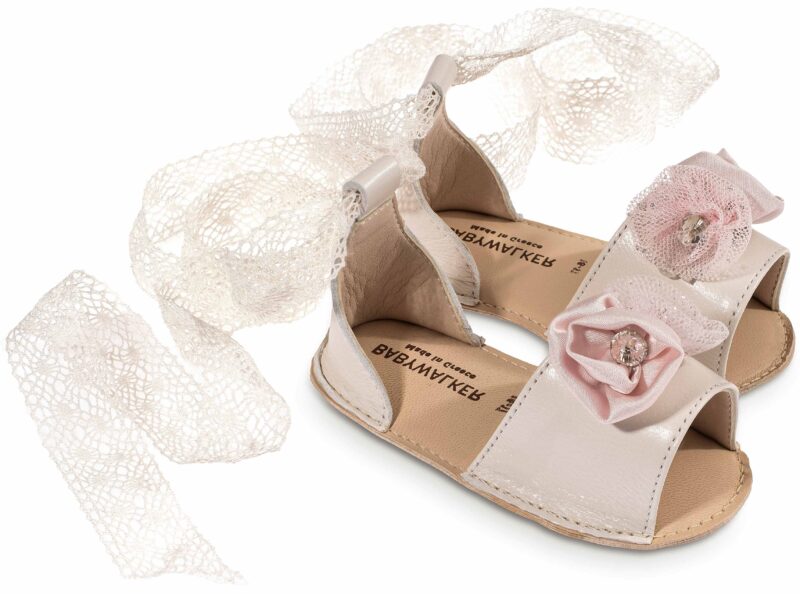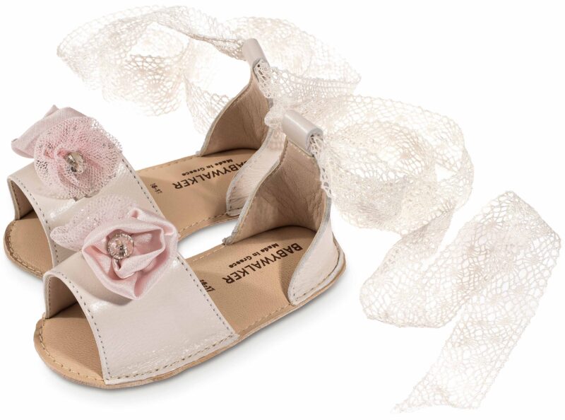 Δερμάτινο Δετό Pip Toe με Χειροποίητο Διακοσμητικό με Λουλούδια σε Εκρού Ροζ Χρώμα