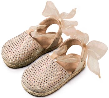 Δερμάτινη Εσπαντρίγια Καλυμένη με Swarovski και Δέσιμο από Κορδέλα Οργάντζας σε Εκρού Χρώμα
