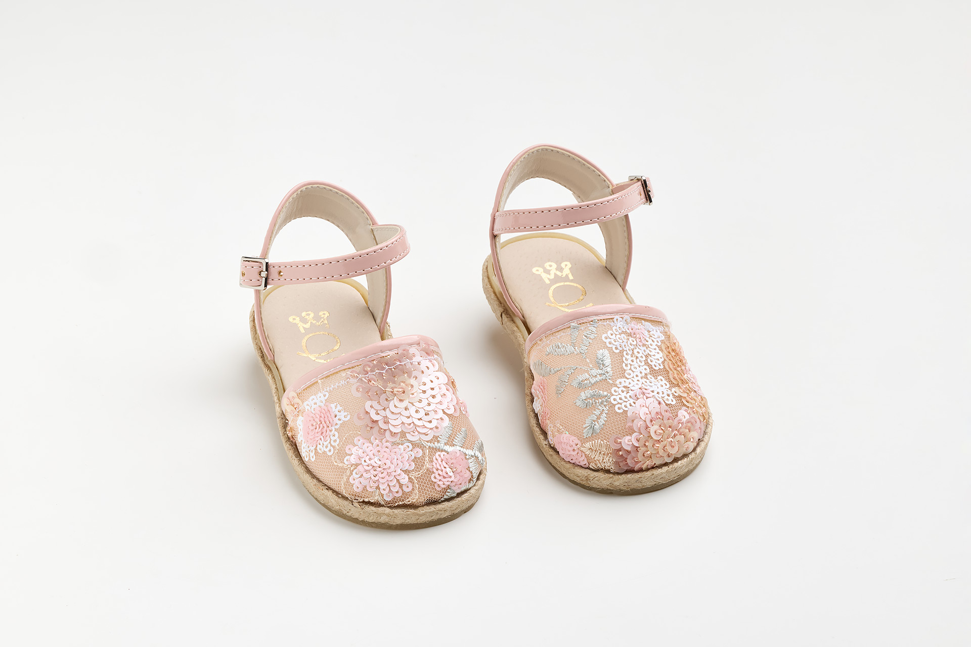 Εσπαντρίγια περπατήματος σε dusty pink δέρμα και διαφάνεια κεντημένη με παγιέτες