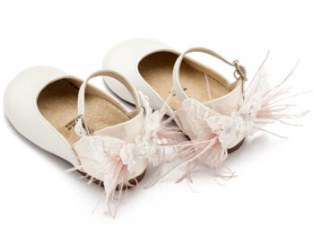 Γαλλικό Γοβάκι με Διακοσμημένη Φτέρνα με Υφασμάτινη Πεταλούδα σε Εκρού Ροζ Χρώμα