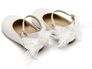 Γαλλικό Γοβάκι με Διακοσμημένη Φτέρνα με Υφασμάτινη Πεταλούδα σε Λευκό Χρώμα