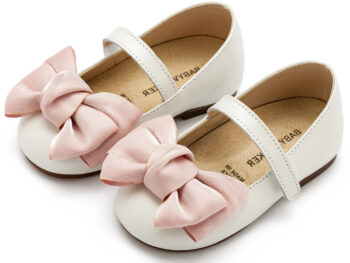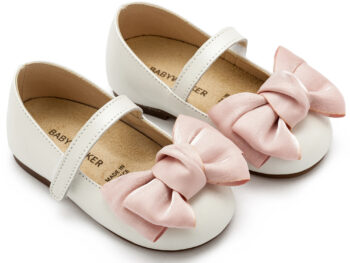 Δερμάτινο Γοβάκι Μονή Μπαρέτα Χρατς με Υφασμάτινο Φιόγκο Οργάντζας σε Εκρού Ροζ Χρώμα