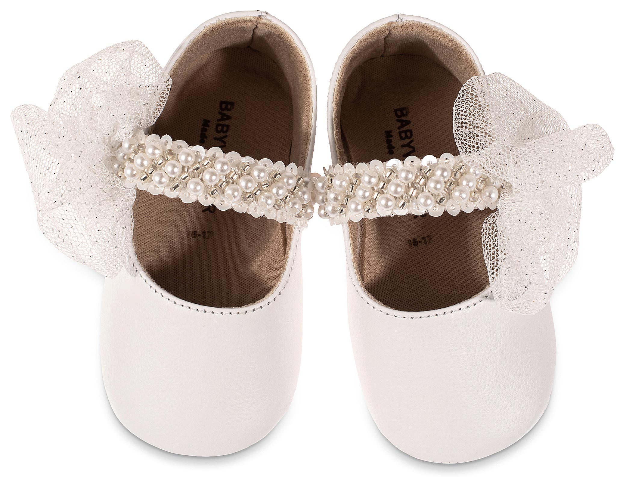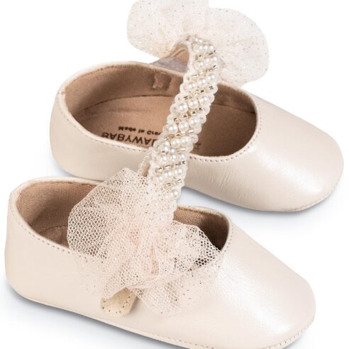 Δερμάτινο Γοβακι Μονή Μπαρέτα με Χειροποίητο Διακοσμητικό απο Τούλι και Πέρλες σε Λευκό Χρώμα