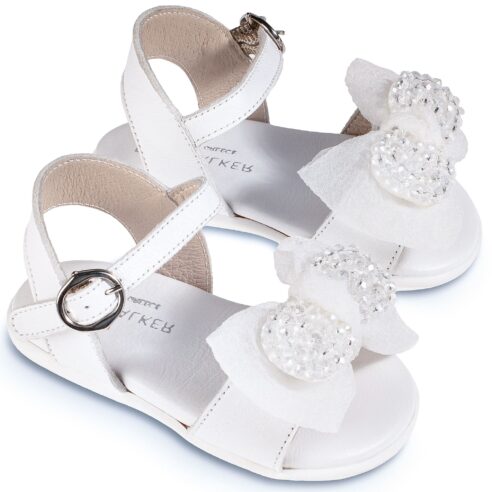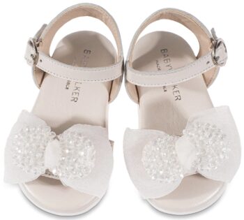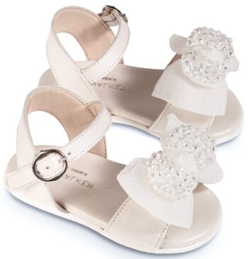 Δερμάτινο Πέδιλο Διακοσμημένο με Υφασμάτινο Φιόγκο με Χάντρες σε Εκρού Χρώμα