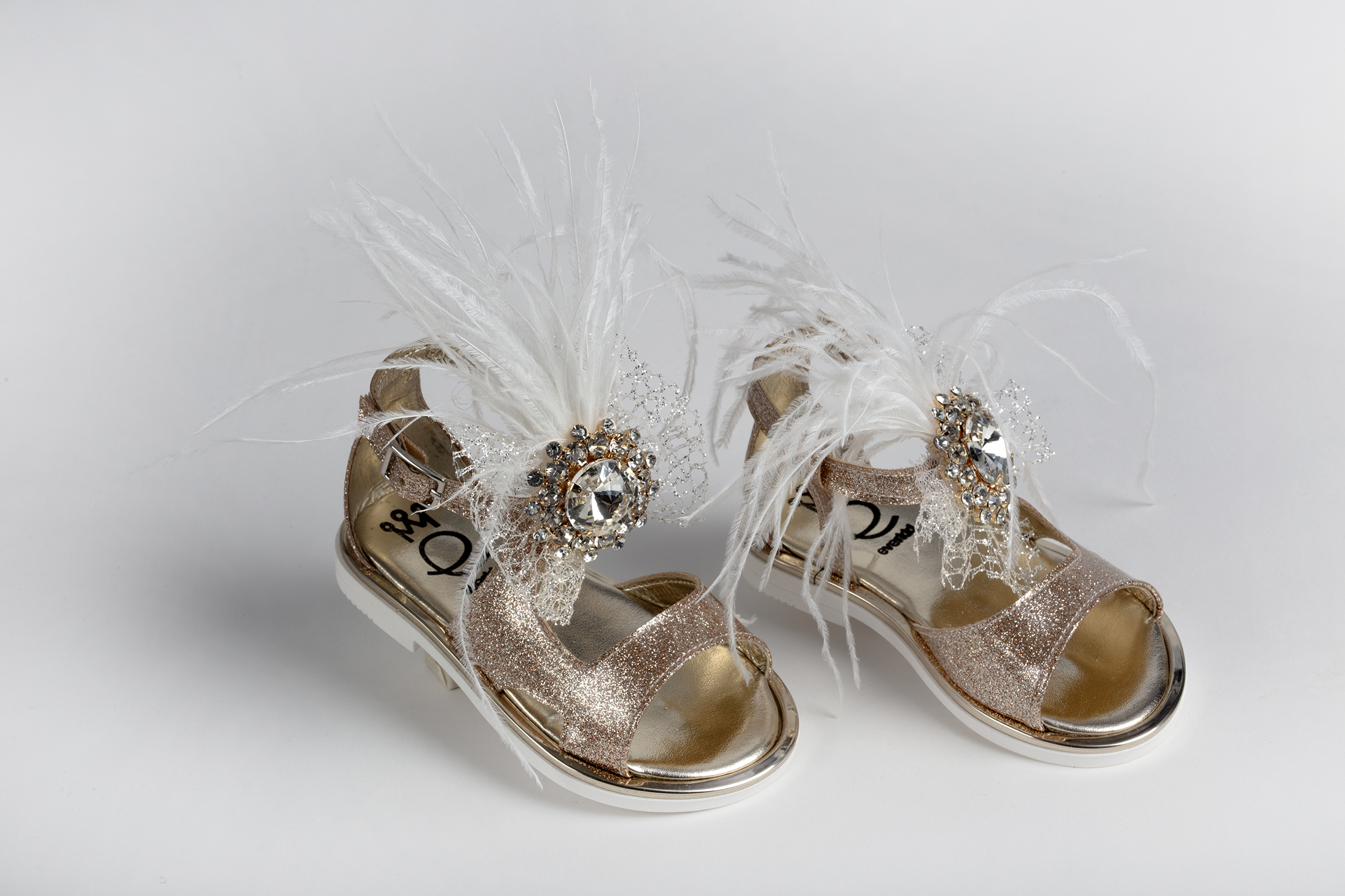 Σανδάλι περπατήματος σε ροζ χρυσό γκλίτερ με διακοσμητικό κουμπί και φτερά