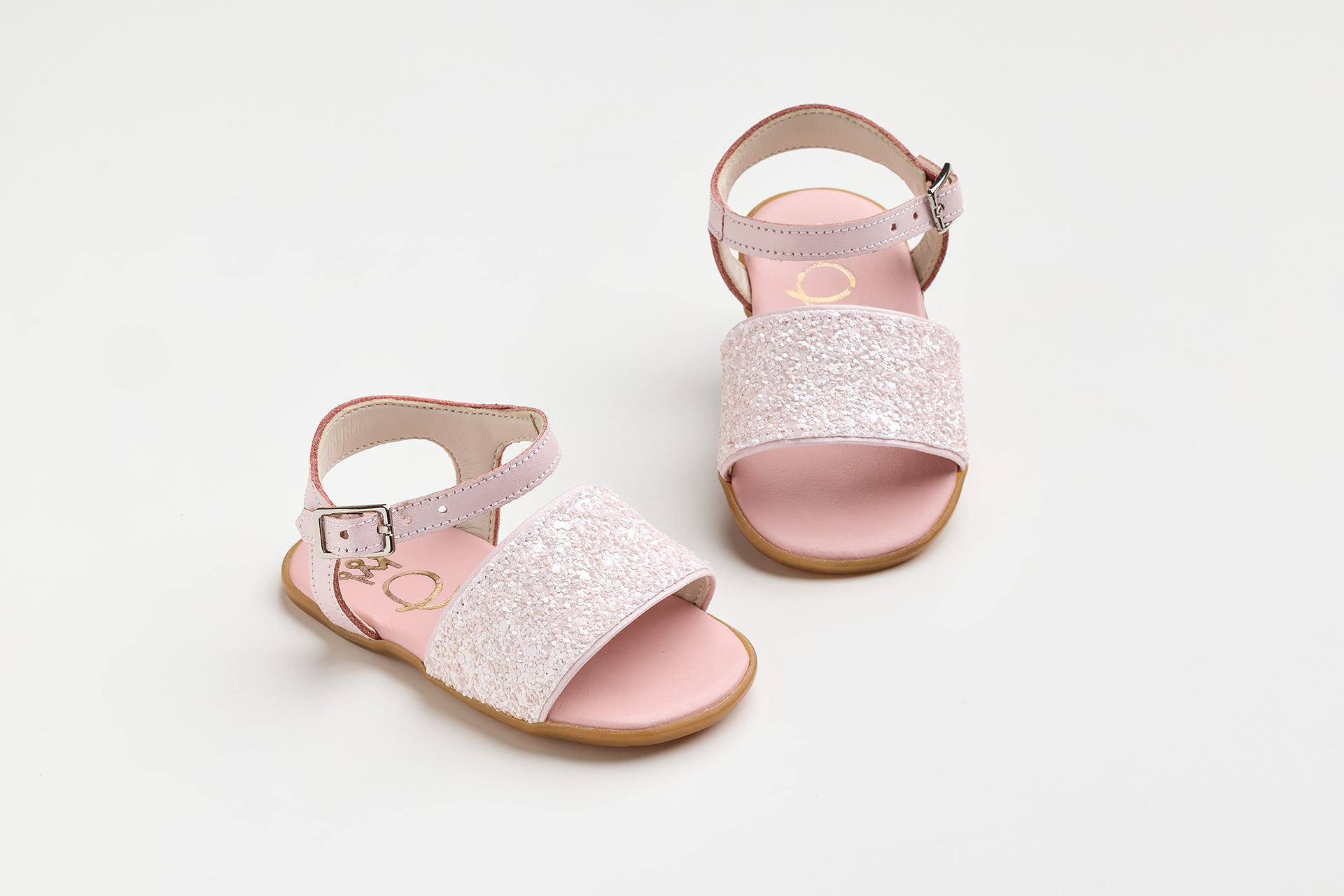 Σανδάλι για τα πρώτα βήματα σε ροζ ματ γκλίτερ και ροζ δέρμα