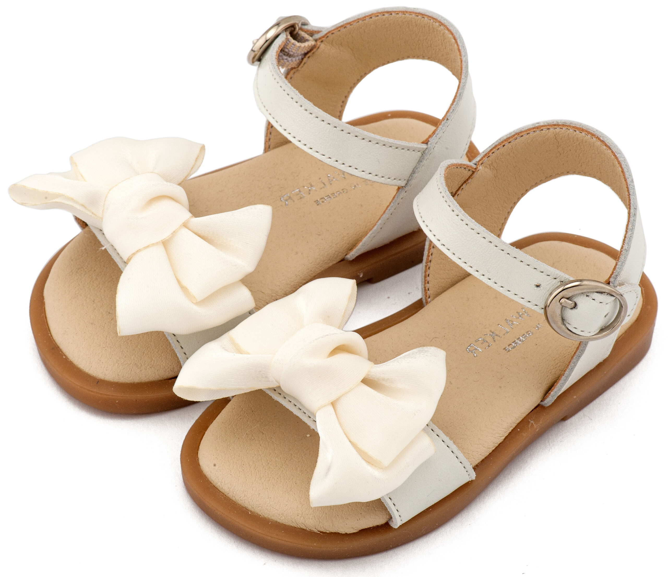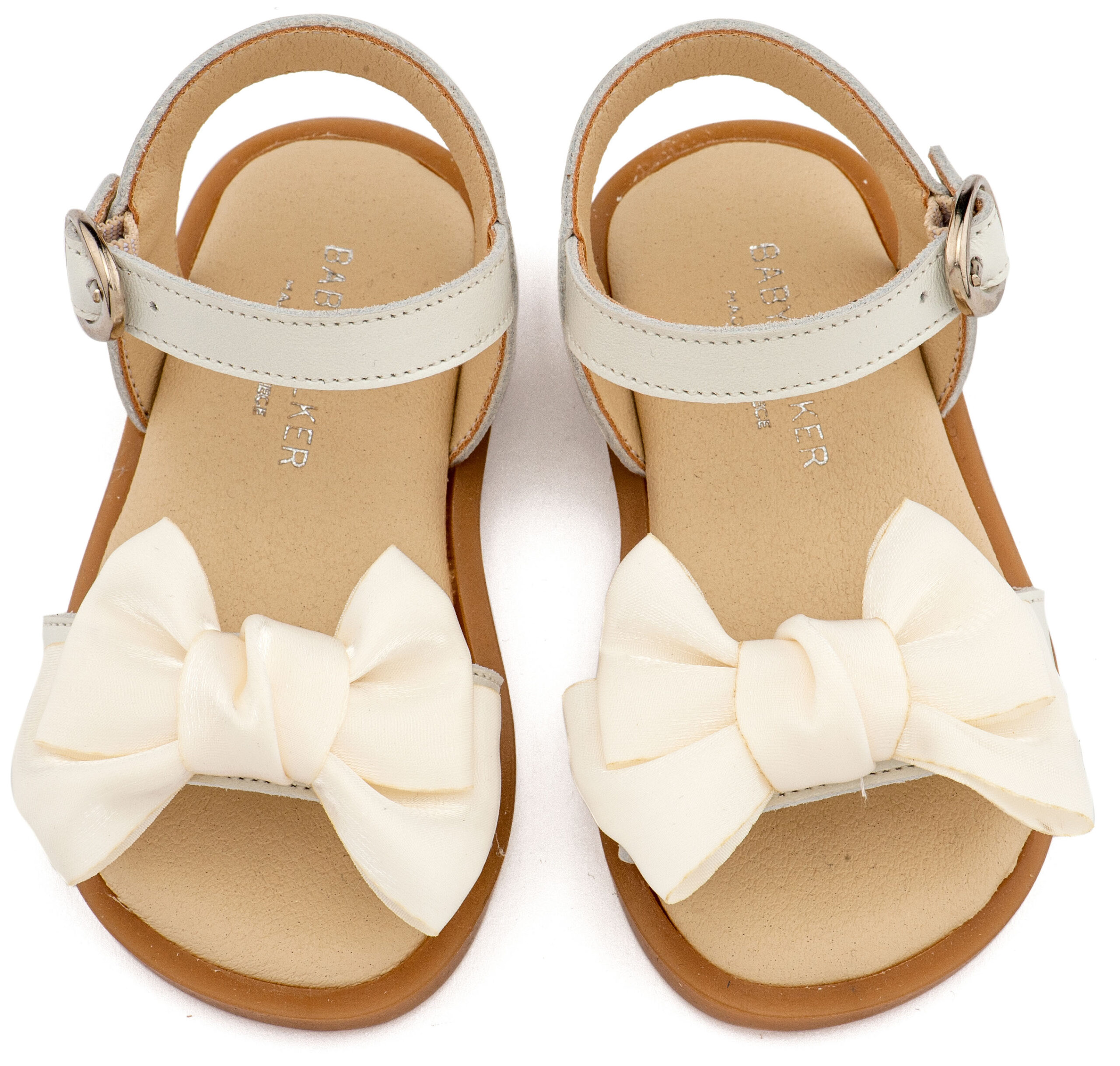 Δερμάτινο Πέδιλο Διακοσμημένο με Χειροποίητο Φιόγκο Οργάντζας και Πέρλες σε Εκρού Χρώμα