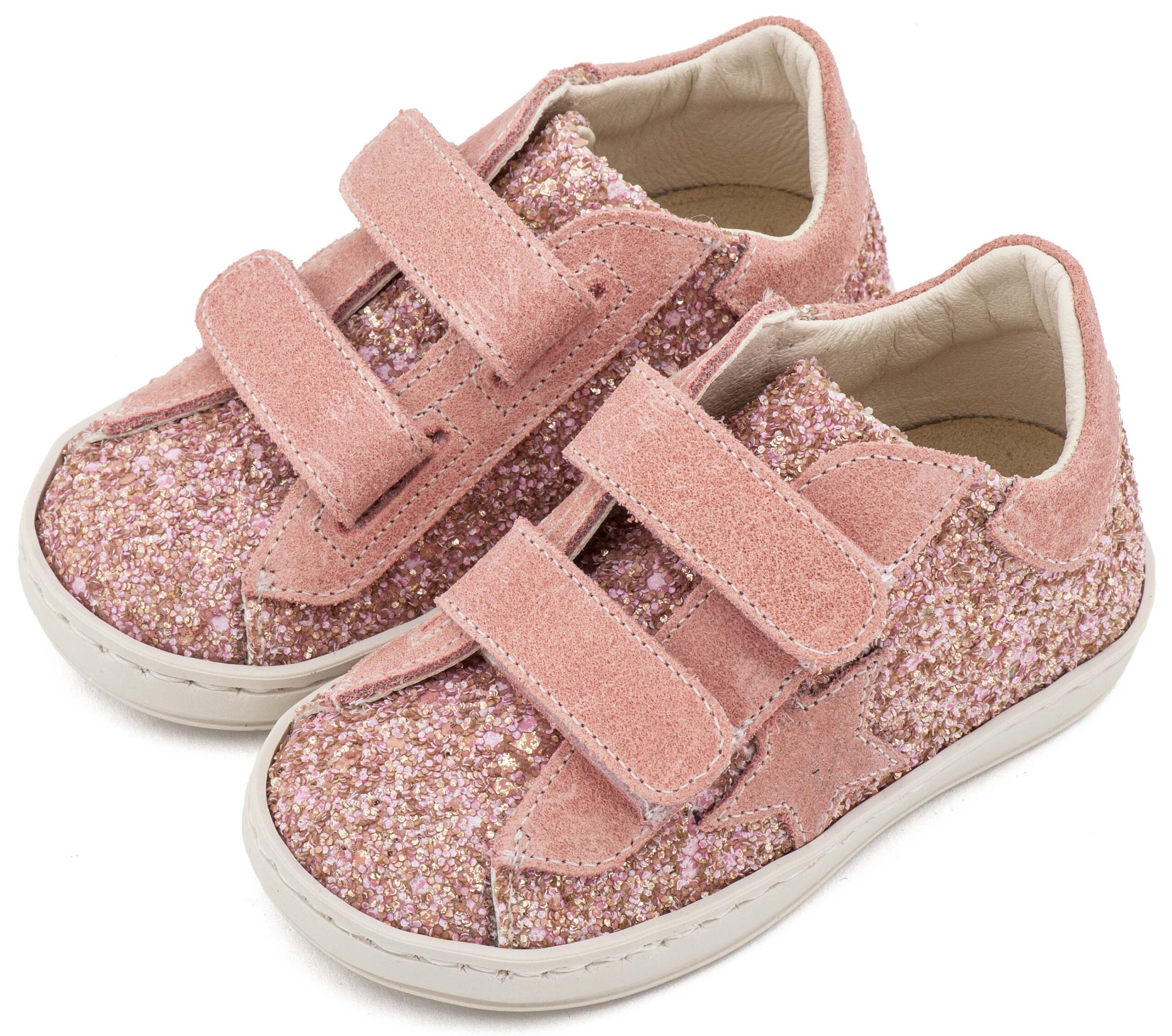 Sneaker Διπλό Χρατς απο Glitter και Δέρμα με Αστέρι στο Πλάι σε Ροζ Αντικέ Χρώμα