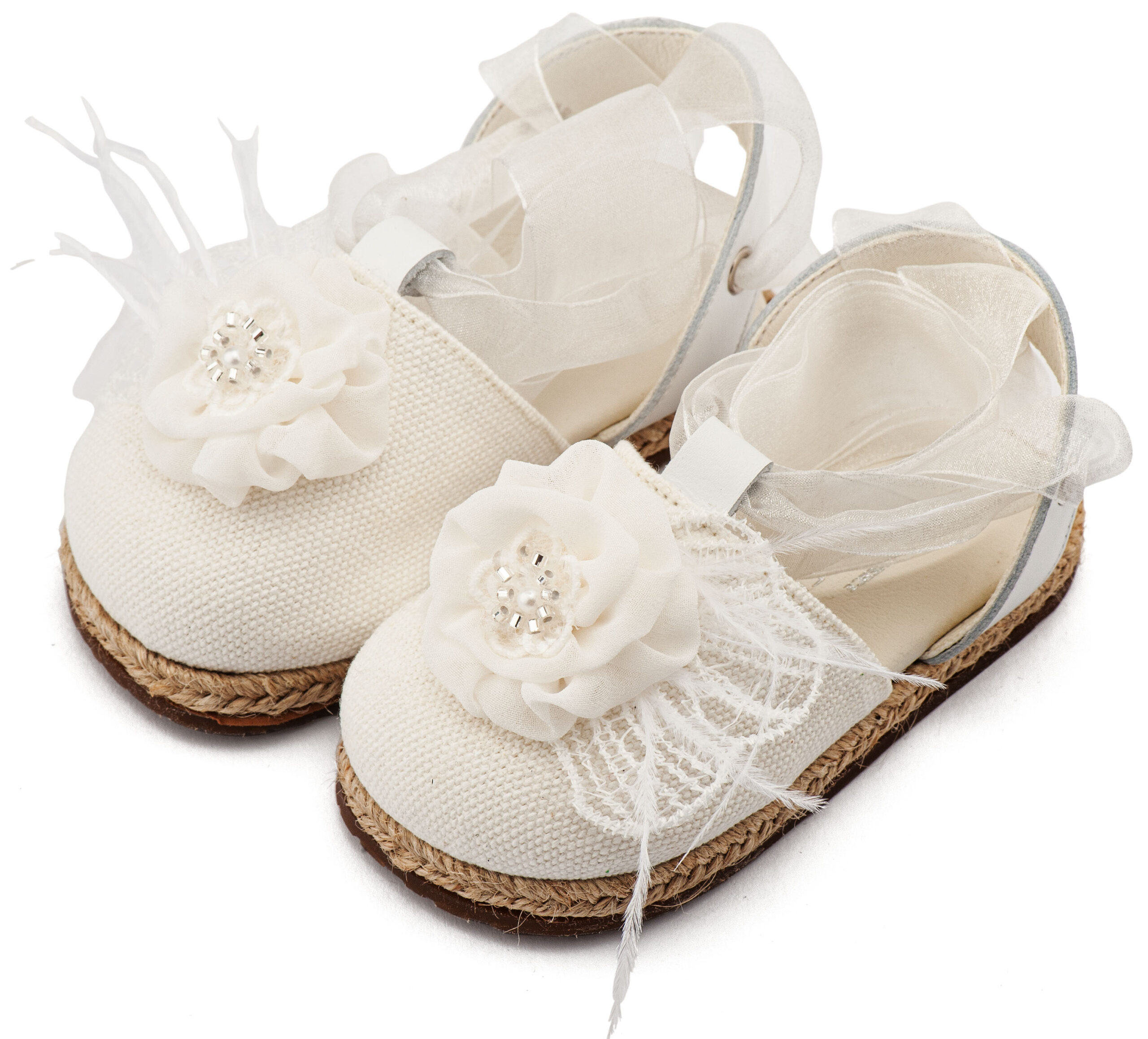 Υφασμάτινη Εσπαντρίγια με Χειροποίητο Διακοσμητικό με Πούπουλα σε Λευκό Χρώμα