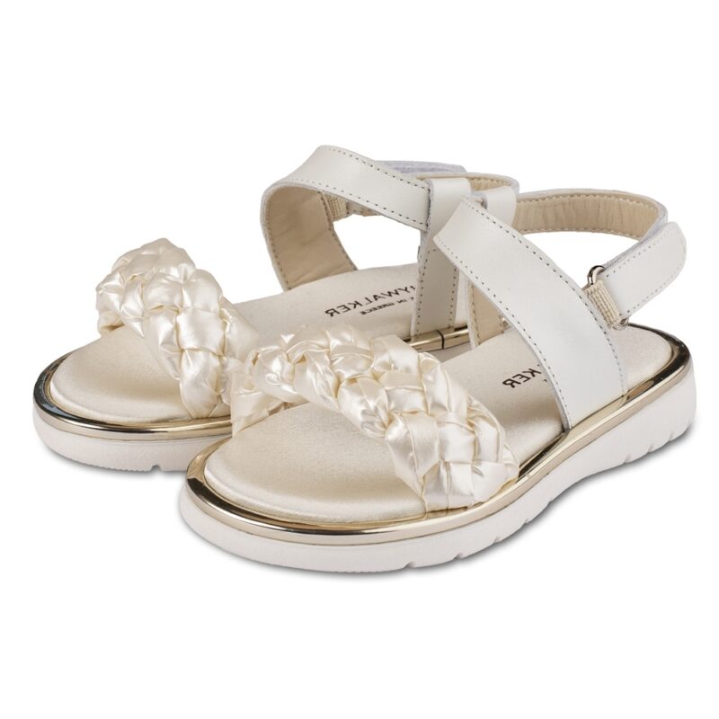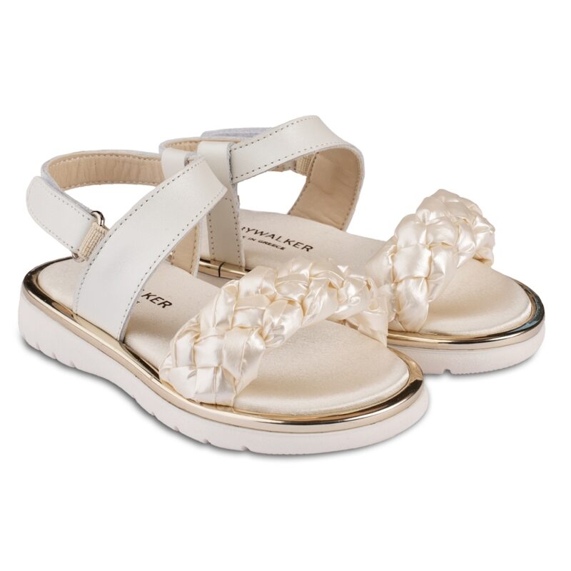 Δερμάτινο πέδιλο, με σατινέ υφασμάτινη τρέσα πλεξούδα, σε εκρού χρώμα. Παπουτσάκια περπατήματος.