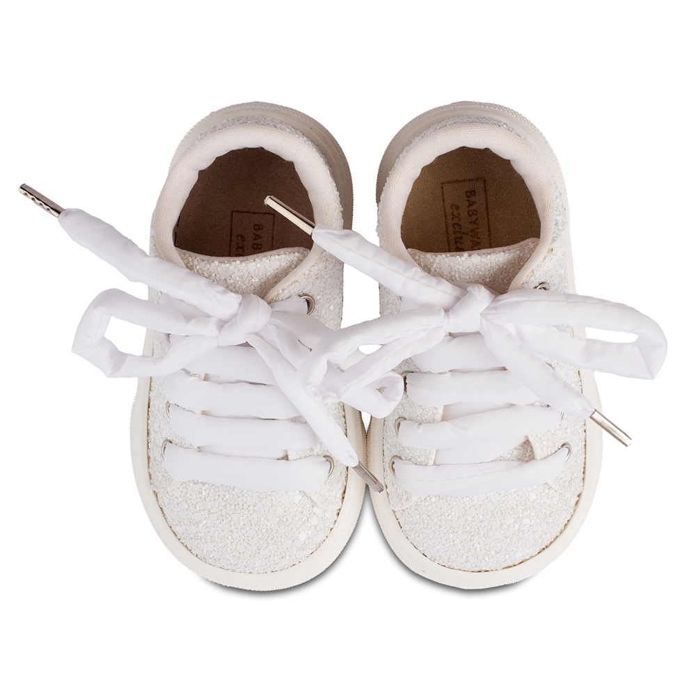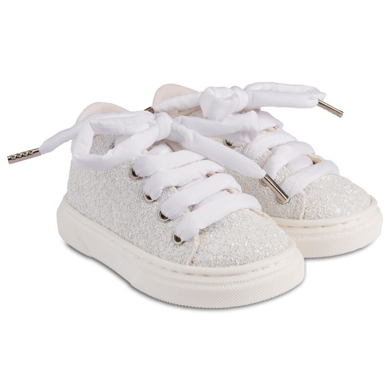 Δετό σνίκερ από ύφασμα γκλίτερ, με υφασμάτινο στρόγγυλο κορδόνι, σε λευκό χρώμα. Παπουτσάκια περπατήματος.