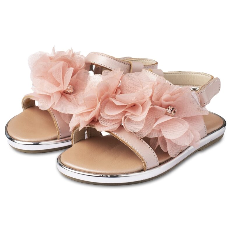 Σειρά Babywalker Luminosa: με κρύσταλλα από την SWAROVSKI INTERNATIONAL. Δερμάτινο πέδιλο διακοσμημένο με λουλουδάκια και στρας swarovski, σε ροζ χρώμα. Παπουτσάκια περπατήματος.