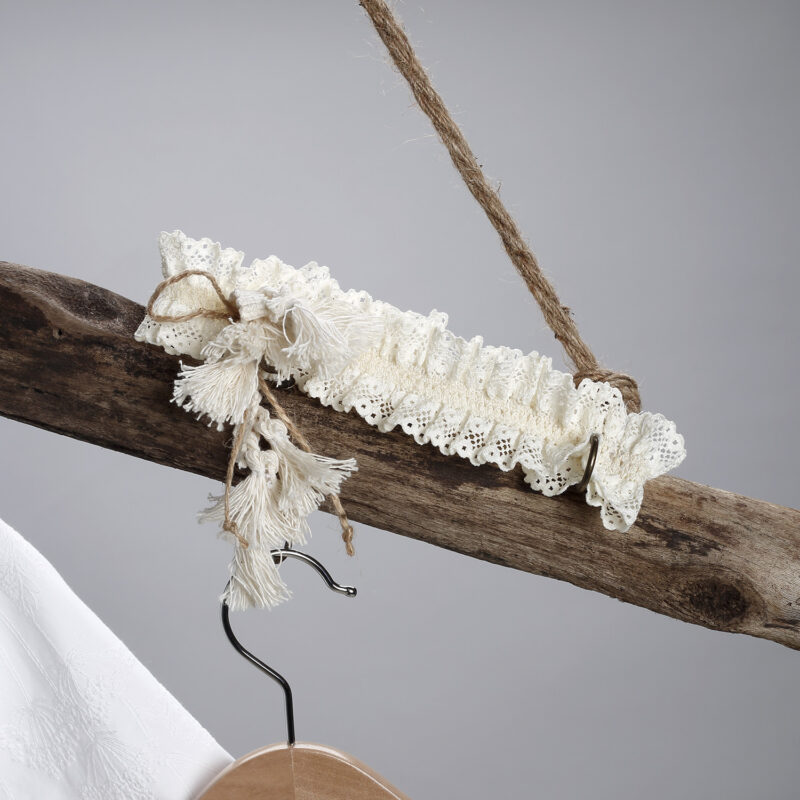 Κορδέλα από μπεζ δαντελένια τρέσα στολισμένη με τρεσάκι.