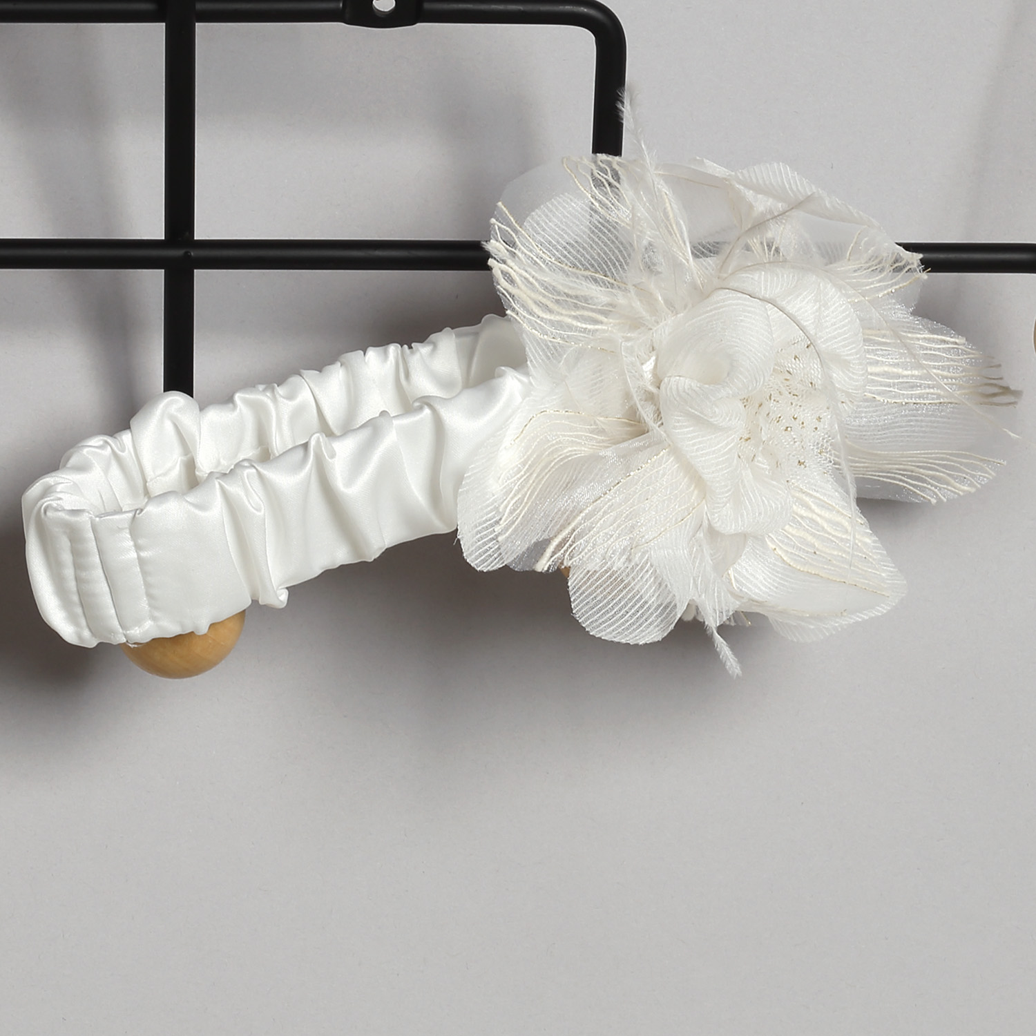 Φόρεμα από κεντημένη τούλινη δαντέλα σε εκρού χρώμα. Από μέσα υπάρχει δεύτερη φούστα από εκρού σατέν. Στο εσωτερικό του φορέματος υπάρχει βαμβακερή φόδρα. Ο στολισμός αποτελείται από μια σατέν ζώνη που σχηματίζει φιόγκο στο πίσω μέρος. Μπροστά υπάρχει ένα λουλούδι από δαντέλα, μουσελίνα και τούλι με ραμμένα πούπουλα. Η εσωτερική φούστα, η ζώνη και ο στολισμός διατίθενται σε πολλά χρώματα. Ζακετάκι από δαντέλα με πούλιες σε εκρού χρώμα, επενδυμένο με βαμβακερή φόδρα με δυο κρεμαστά κορδελάκια που χρησιμοποιούνται για το δέσιμο. Κορδέλα από σατέν σε εκρού χρώμα στολισμένη με λουλούδι από δαντέλα, μουσελίνα και τούλι.
