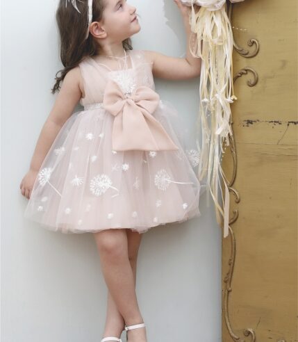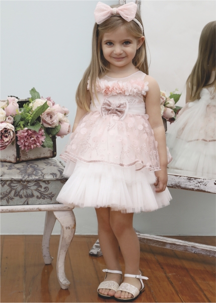 Βαπτιστικό φορεματάκι για κορίτσι Ροδακινί-Ιβουάρ Κ4336ΦΡΙ, Mi Chiamo