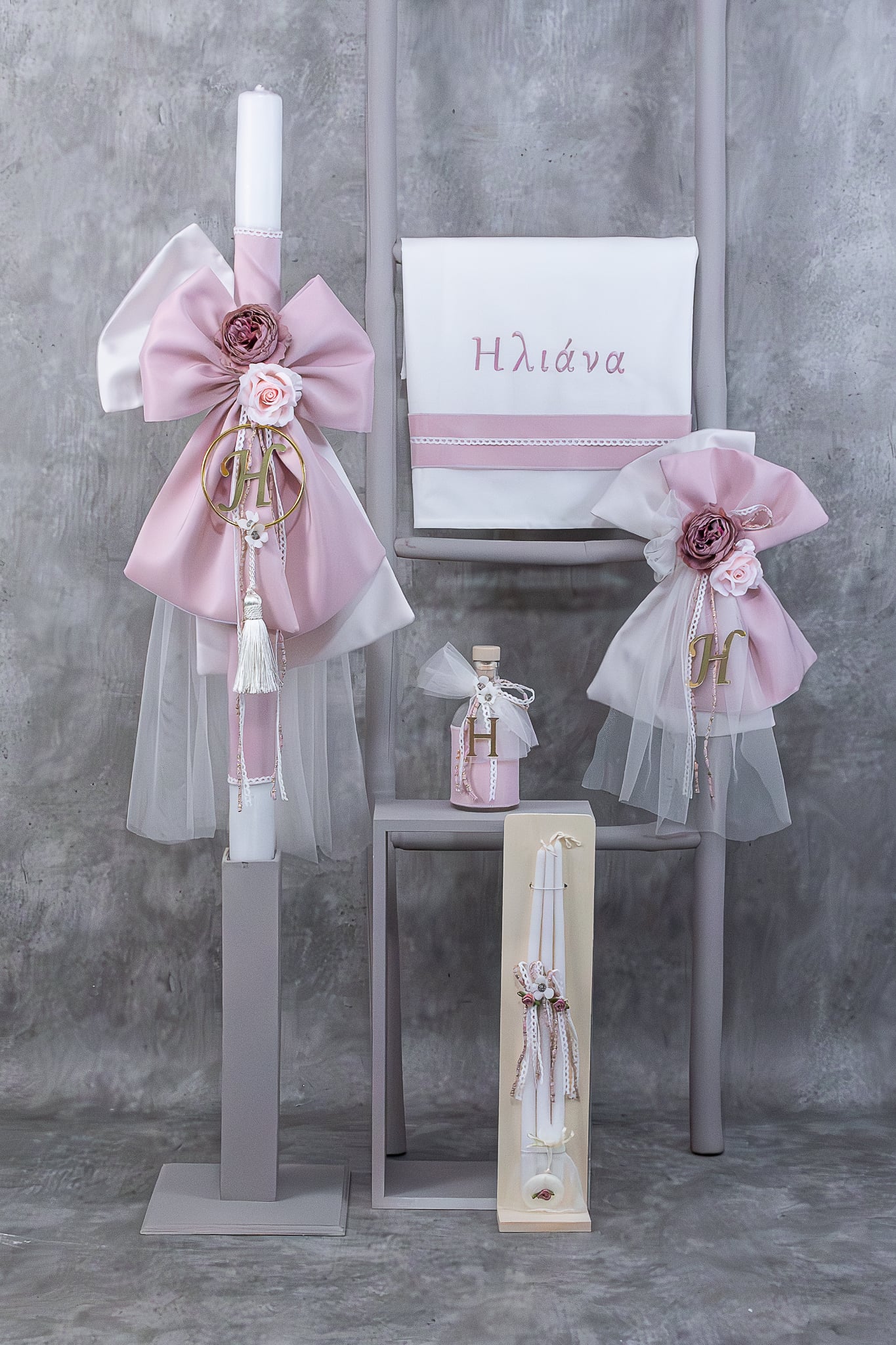 Χειροποίητο Σετ βάπτισης για Κορίτσι Φιόγκος με μονόγραμμα
