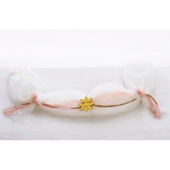 Σετ βάπτισης της εταιρίας Bellissimo με θέμα ήλιος, στους χρωματικούς συνδυασμούς του κίτρινου και του ροζ.