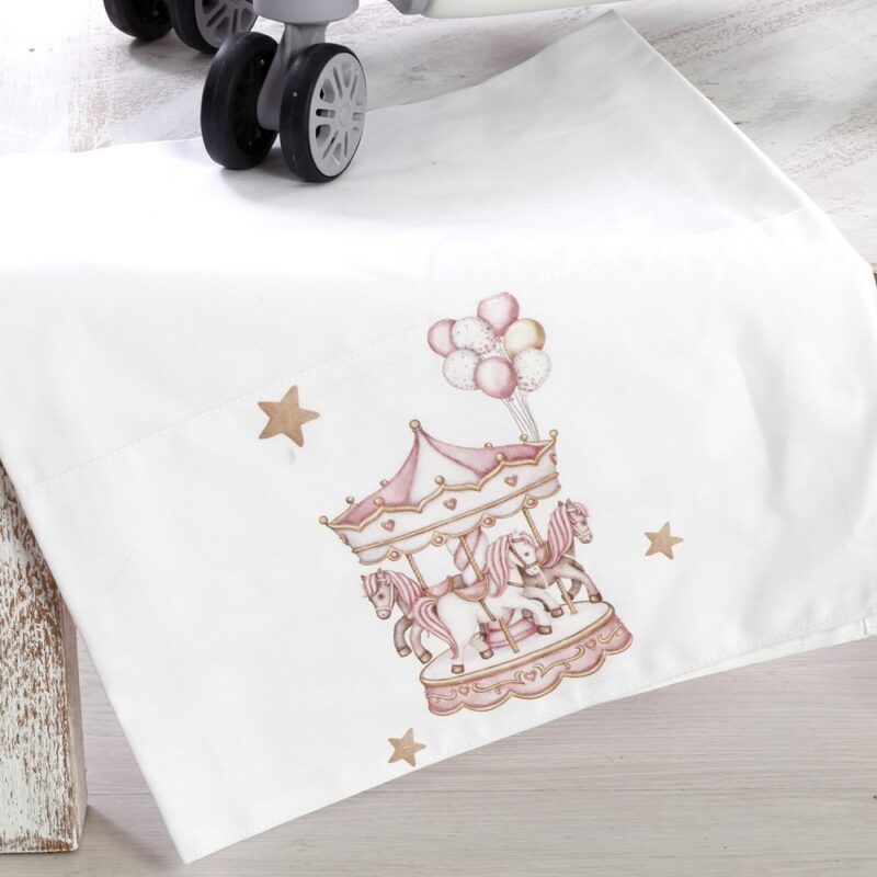 - Μεγάλη πετσέτα με χειροποίητο κέντημα καρουζέλ και διακριτικά αστέρια