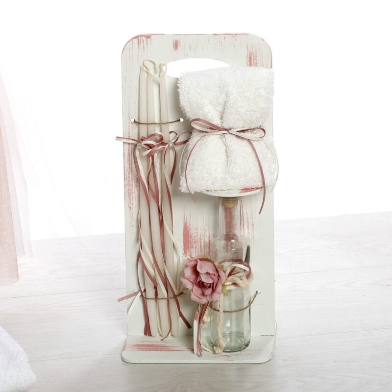 ✔ Σετ λαδιού με μπουκαλάκι, σαπούνι και κεράκια, διακοσμημένα με φιόγκους και ρομαντικά στοιχεία.