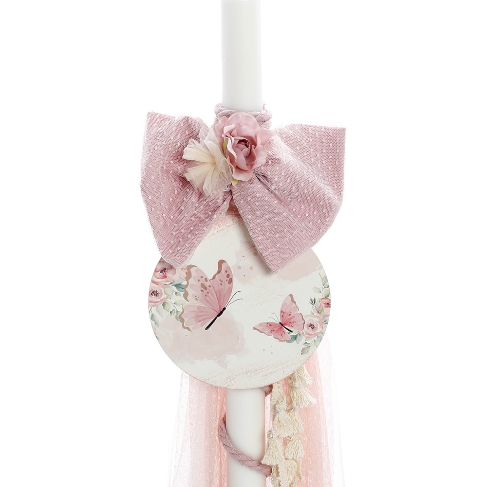 ✔ Λαμπάδα βάπτισης, διακοσμημένη με UV εκτύπωση πεταλούδας, τούλι, δαντέλα και αέρινα ρομαντικά υφάσματα.