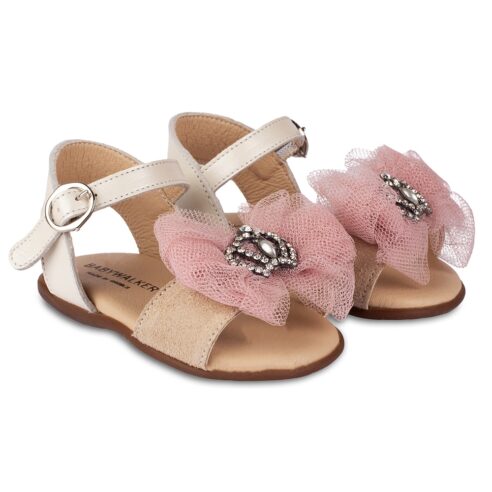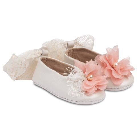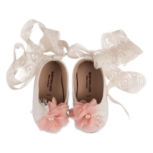 Βαπτιστικά παπούτσια κορίτσι BabyWalker εκρού – ροζ
